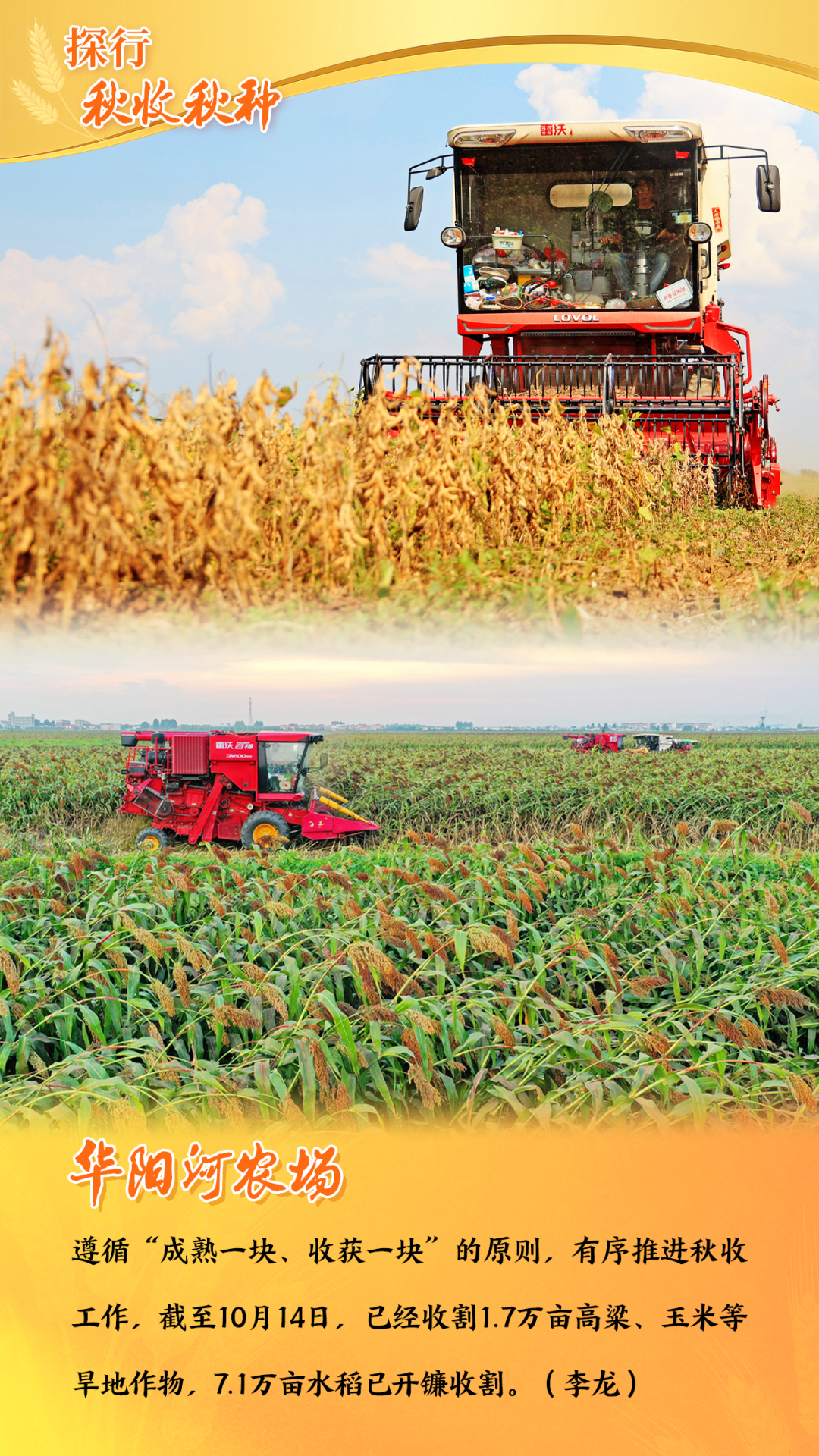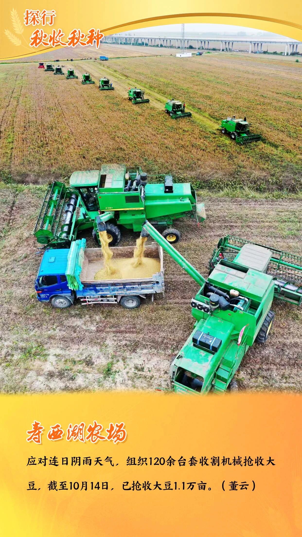 垦区上下争分夺秒开展秋收抢收。