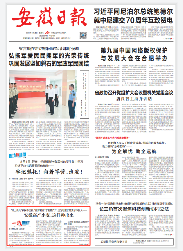 此稿发表于8月2日《安徽日报》头版,记者汪永安。