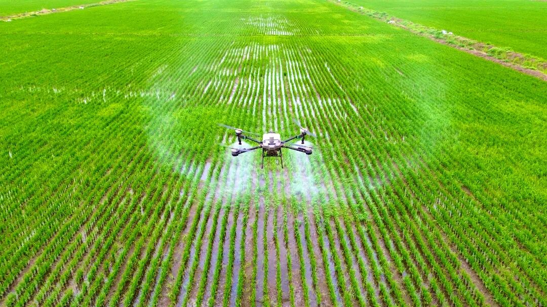 大圹圩农场利用植保无人机开展水稻植保作业(沈鹏翔 摄)